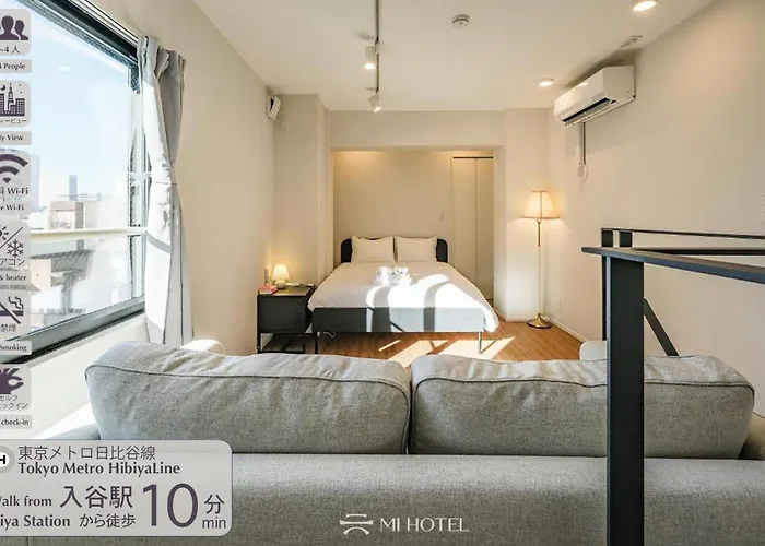 The 9-room Mi-Hotel Asakusa Tokyo lies 2.4 km from the Ueno Park and merely 10 minutes' stroll from Iriya tube station. Guests can use Wi-Fi for either business or leisure reasons.